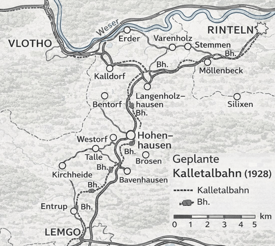 1928_Plan_der_Kalletalbahn Bildrechte Westorf.DE Neuzeichnung für Westorf.DE auf Grundlage einer historischen Karte von Baumeister Gerhard Meyer (Hohenhausen). |