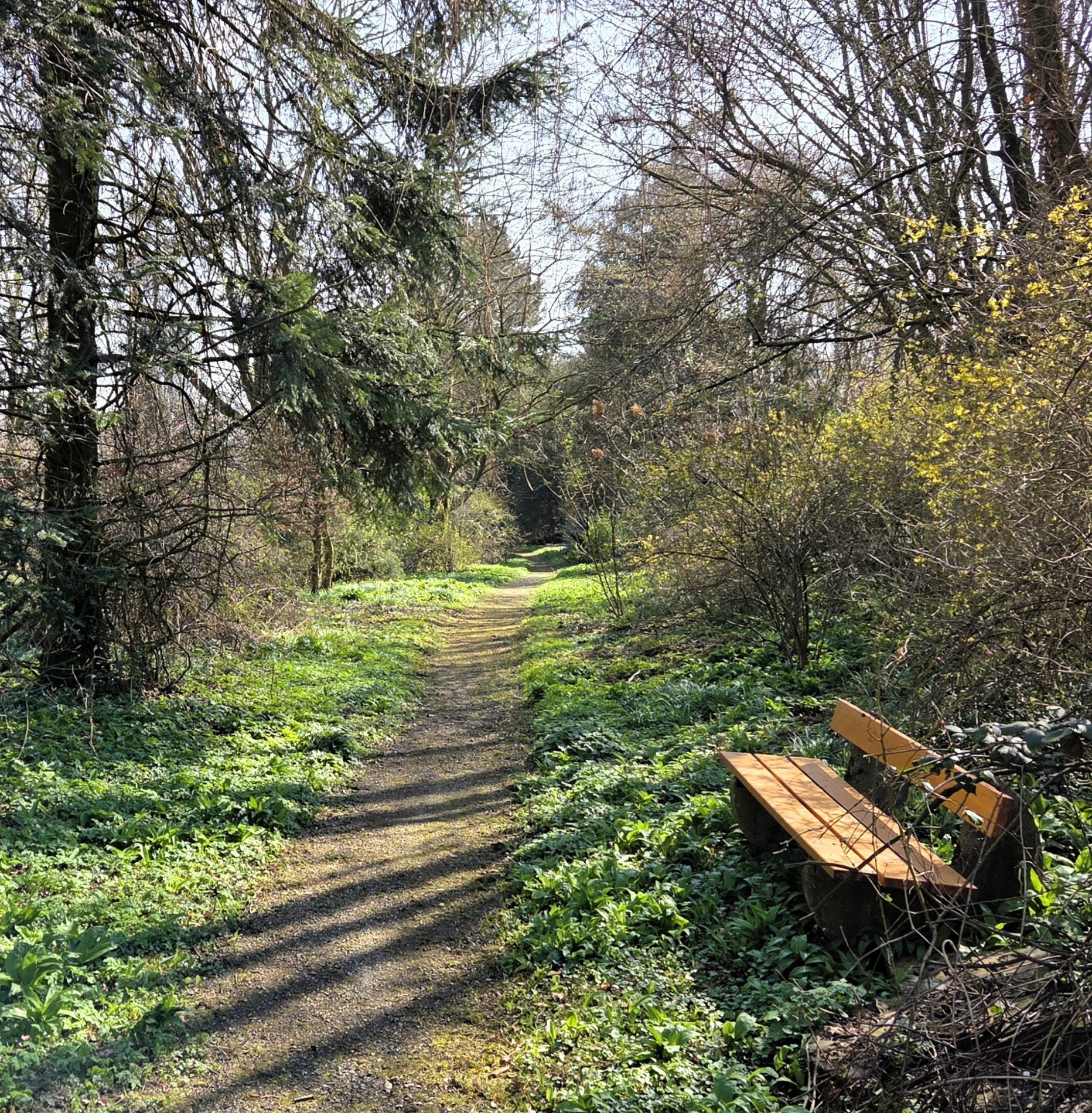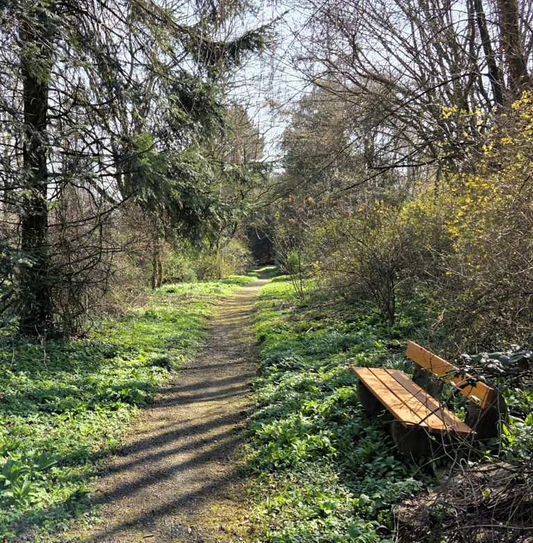 Obwohl der Park selbst eher unscheinbar wirkt, bietet er ein naturnahes Erlebnis mit reichlich Bärlauch und mehreren Bänken zum Verweilen. Der Bachabschnitt mündet weiter unten in den Westorfer Bach, der wiederum bei Hohenhausen in die Westerkalle übergeht.